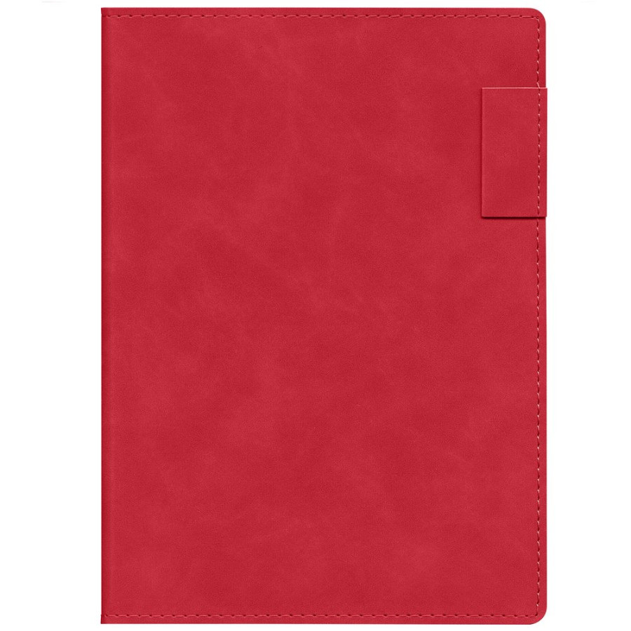 Ежедневник 17х24 см, с гибкой обложкой, выполнен из материала Nubuck Touch, красный РР, дополнен петлей-лейблом для ручки и двойным ляссе в цвет материала.