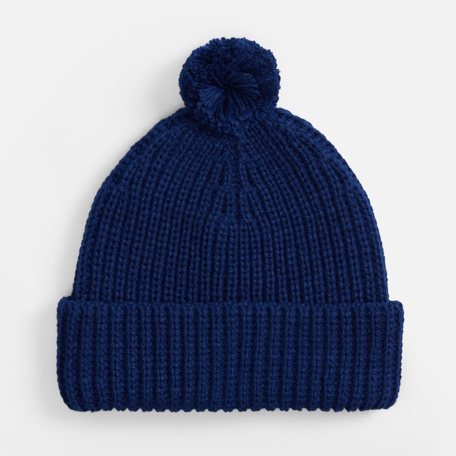 Однослойная шапка из высокообъемной пряжи с помпоном.