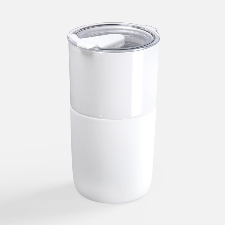 Прочная керамика — и напиток не впитает посторонних запахов и вкусов, силиконовый рукав — и стакан не обожжет руки, плотная крышка — и содержимое не прольется и не остынет слишком быстро.