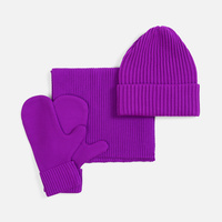 В набор входит удобный шарф с технологичным отверстием для быстрого завязывания, шапка с двойным отворотом и теплые двухслойные варежки с широкой манжетой. Все изделия связаны из акриловой пряжи, отличаются практичностью и элегантной простотой.