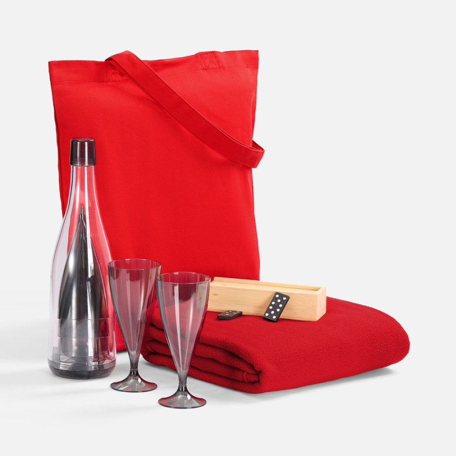 | Материал: | плед - флис, плотность 180 г/м²; набор бокалов - пластик; футляр для домино - бамбук; костяшки - МДФ; сумка - хлопок 100%, плотность 220 г/м²; саржа |