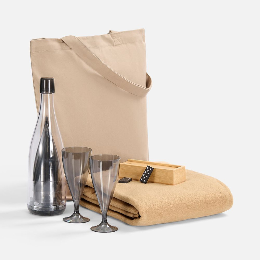 | Материал: | плед - флис, плотность 180 г/м²; набор бокалов - пластик; футляр для домино - бамбук; костяшки - МДФ; сумка - хлопок 100%, плотность 220 г/м²; саржа |