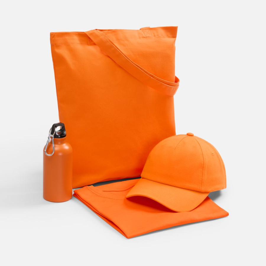 | Материал: | футболка - хлопок 100%, гребенная пряжа (пенье), плотность 160 г/м²; джерси; бейсболка - полиэстер, 75%; хлопок, 25%, плотность 170 г/м²; джерси; бутылка - алюминий; крышка - пластик; сумка - хлопок 100%, плотность 220 г/м²; саржа |