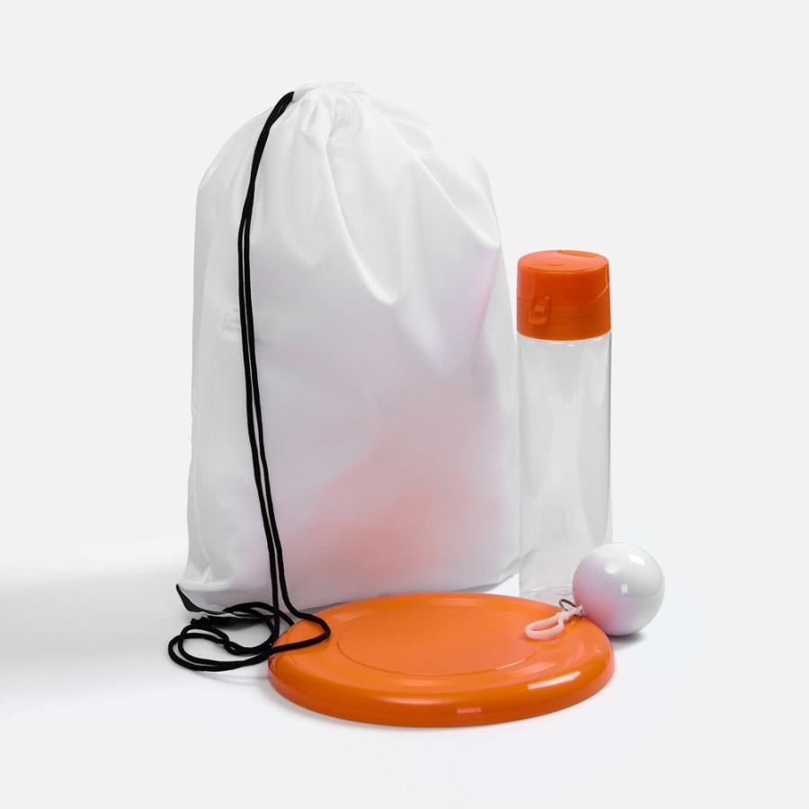 | Материал: | бутылка, футляр, тарелка-фрисби - пластик; плащ - полиэтилен, ПНД, плотность 12 мкм; рюкзак-мешок - спанбонд, плотность 70 г/м² |