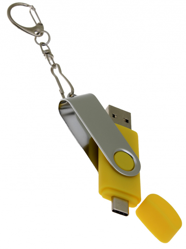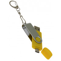 OTG_2in1_TC_030 Флеш-накопитель поворотный механизм, c дополнительным разъемом Type-C, желтый.