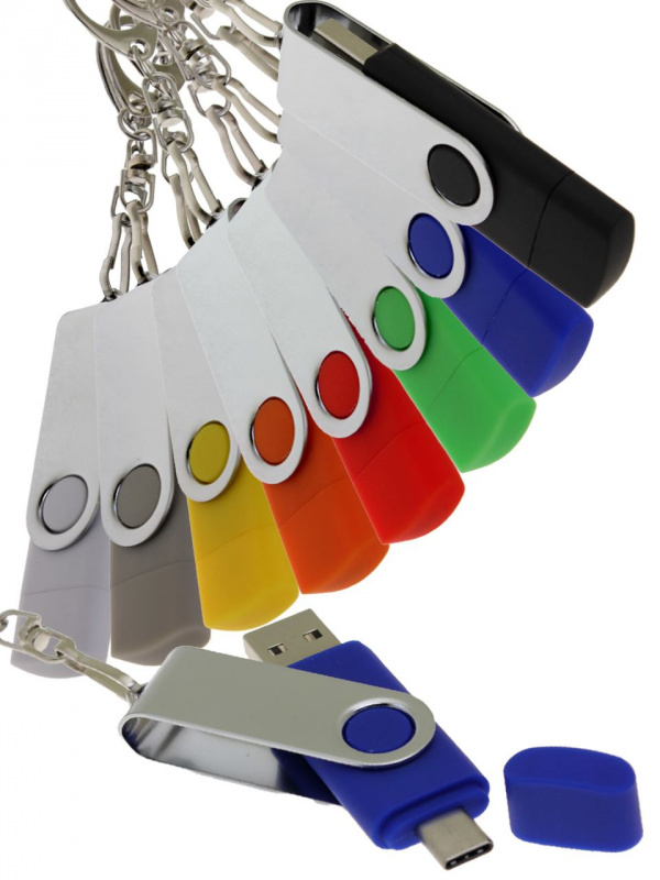 OTG_2in1_TC_030 Флеш-накопитель поворотный механизм, c дополнительным разъемом Type-C, белый.