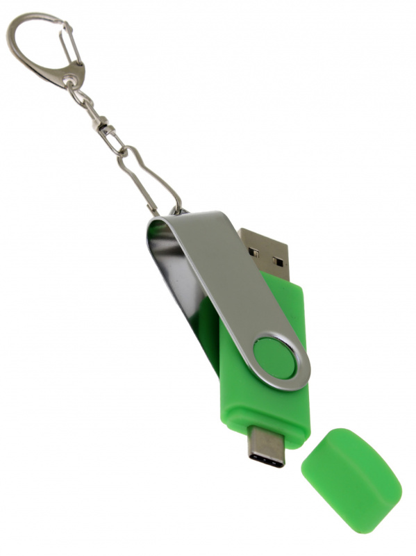 OTG_2in1_TC_030 Флеш-накопитель поворотный механизм, c дополнительным разъемом Type-C, зеленый.