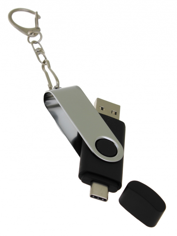 OTG_2in1_TC_030 Флеш-накопитель поворотный механизм, c дополнительным разъемом Type-C, черный.