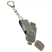 OTG_2in1_TC_030 Флеш-накопитель поворотный механизм, c дополнительным разъемом Type-C, серебро.