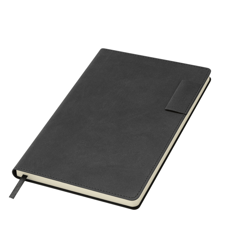 Мягкий на ощупь материал с мелкими вкраплениями имитирует натуральную замшу, а петелька для ручки добавляет практичности. Сдержанные оттенки обложки, форзаца и нахзаца гармонично сочетаются между собой.
