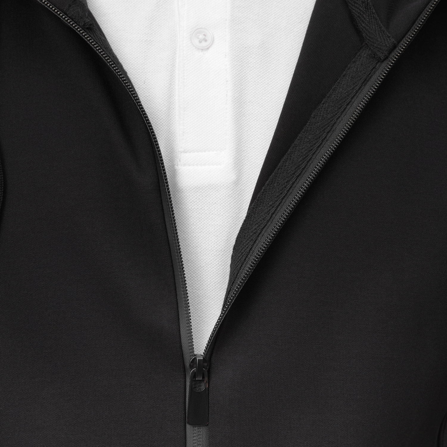 Толстовка сделана из мягкой и прочной ткани интерлок "doubleface", которая приятна к телу и легка в уходе, не растягивается, не выцветает и не деформируется после стирки. Манжеты и низ сделаны из плотной резинки 1х1, благодаря чему вещь держит форму. Карманы на потайных молниях придают толстовке аккуратный вид. Капюшон на подкладке в тон регулируется шнурками.