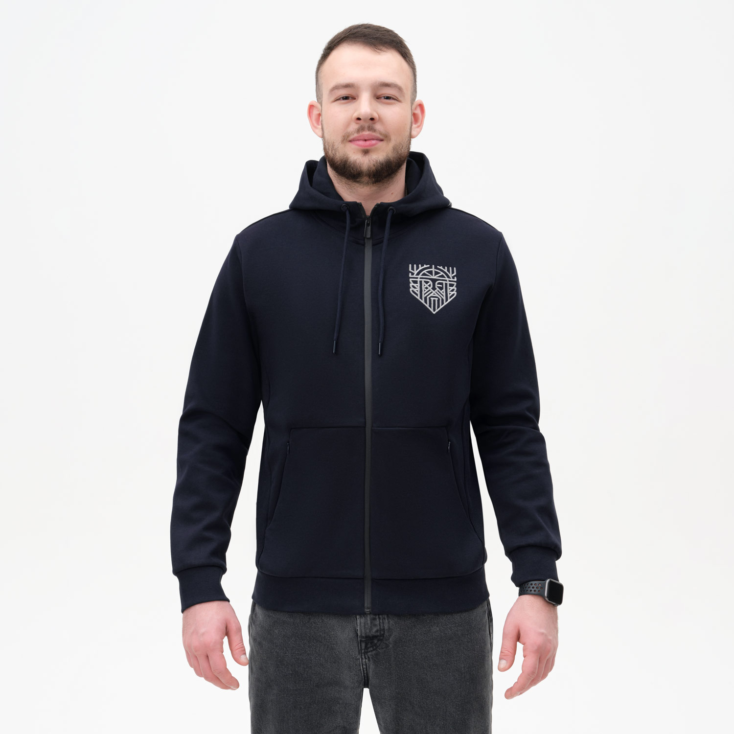 Универсальная толстовка на реверсной молнии прямого силуэта с капюшоном и прорезными карманами. Это базовая модель, которая сочетается с повседневным и спортивным стилем. За счет уникального кроя толстовка хорошо садится по фигуре и обеспечивает комфорт при движениях.
