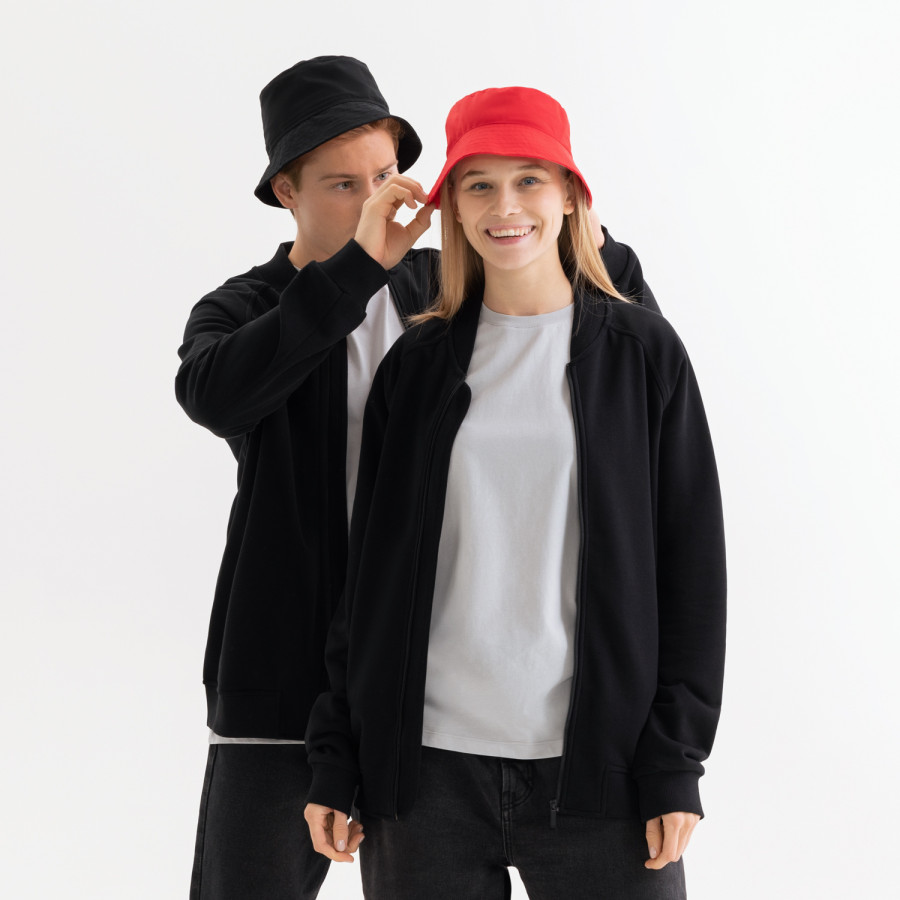 Стильная толстовка бомбер унисекс на реверсной молнии свободного силуэта с прорезными карманами в рамку.