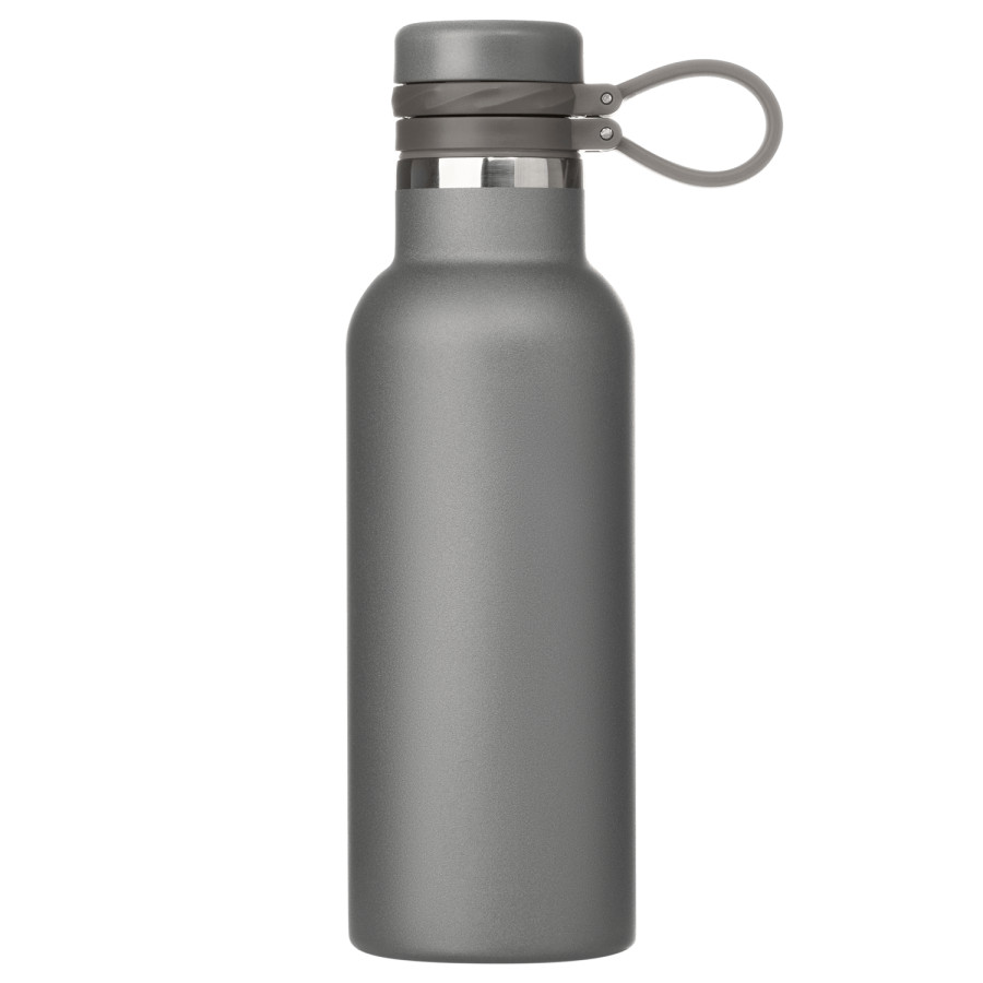 Вакуумная герметичная конструкция выполнена из двухслойной высоколегированной стали 304 марки, что делает конструкцию более прочной и устойчивой к мелким сколам и царапинам. Крышка из высококачественного пластика, оснащена удобной силиконовой петелькой для переноски. Бутылку можно переворачивать и класть в сумку.