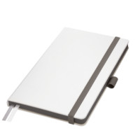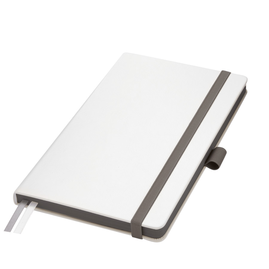 Недатированный ежедневник выполнен в жесткой обложке из искусственной кожи со скругленными уголками. Переплетный материал гладкий, с легкой естественной паутинкой морщин, имеет полуглянцевый блеск. Цвет – чистый белый. Темно-серые матовые форзац и нахзац, а также темно-серый срез блока создают оригинальный динамичный цветовой ансамбль и подчеркивают белизну обложки. Страницы светло-кремового цвета, из гладкого офсета, слегка шелковистые, со скругленными уголками. Добавляют изделию мягкую комфортную теплоту. Двойное атласное ляссе составлено из серой и белой лент. Каждая шириной 6 мм, имеет легкий блеск. Вертикальная фиксирующая резинка прочная, надежная и удобная, в тон срезу. Есть петелька для ручки в тон резинки. Карман на заднем форзаце.
