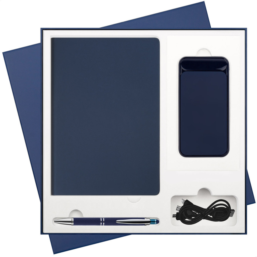 Подарочный набор Стар (Star), синий (ежедневник, ручка, аккумулятор)