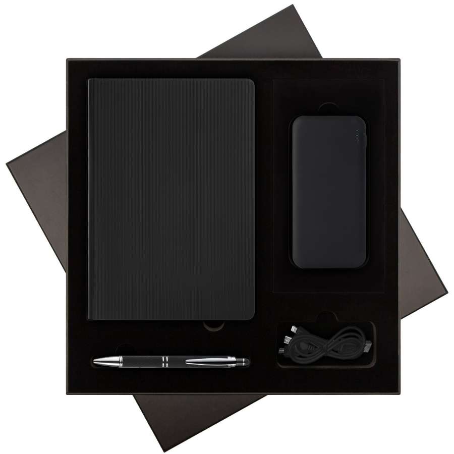 Подарочный набор Rain, черный (ежедневник, ручка, аккумулятор)