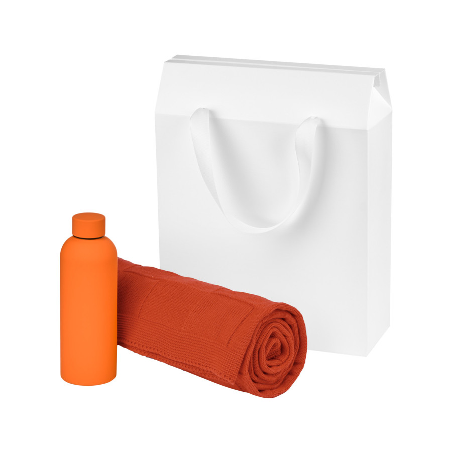 Подарочный набор Прима (Prima), оранжевый (термобутылка, плед)