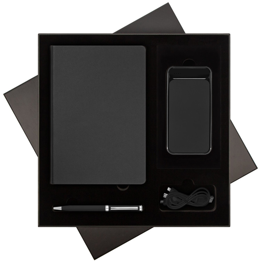 В комплекте: стильный ежедневник для планирования и любых записей, ручка для комфортного письма и внешний аккумулятор, который позволит оставаться на связи в любой ситуации.
