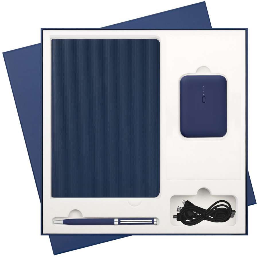 Подарочный набор Rain, синий (ежедневник, ручка, аккумулятор)