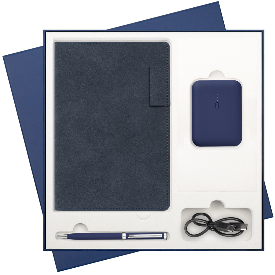 Подарочный набор Теоло (Teolo), синий (ежедневник, ручка, аккумулятор)