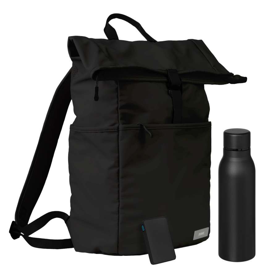 Подарочный набор Boston, черный (термобутылка, ЗУ, рюкзак)