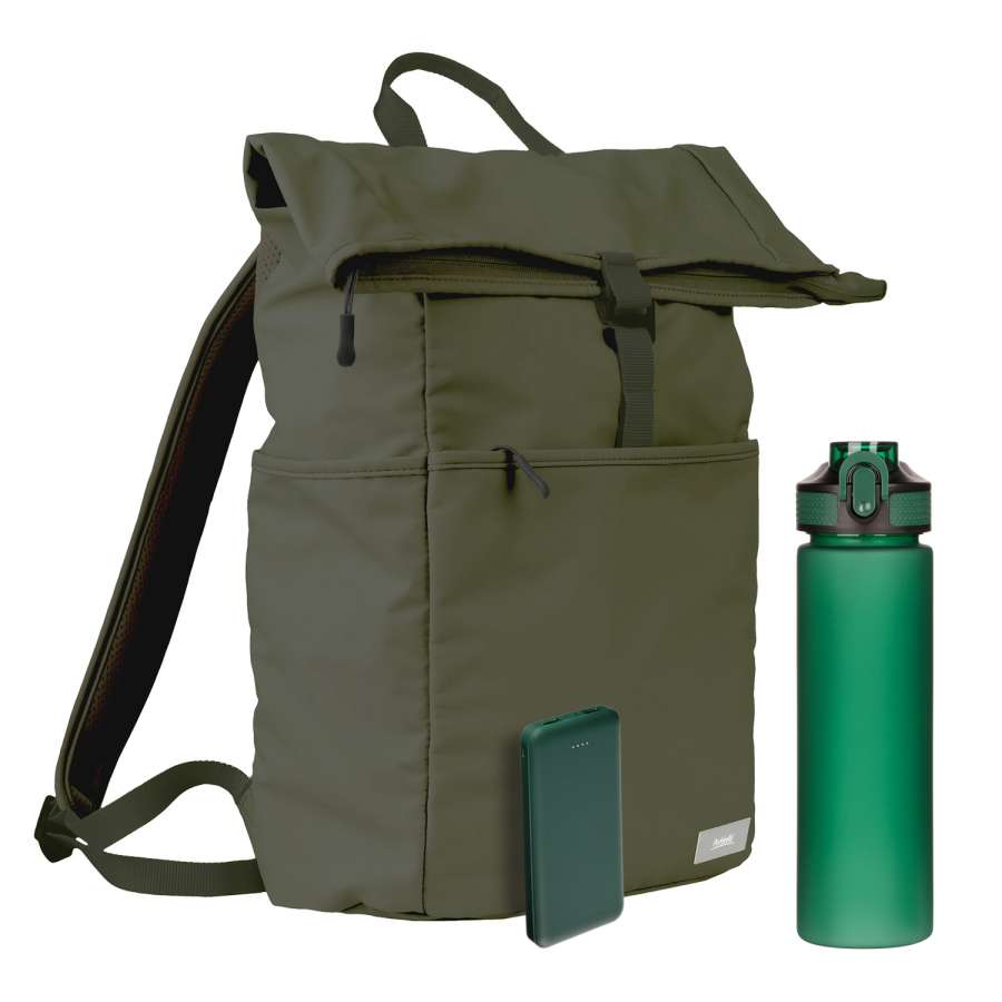 Подарочный набор Boston, зеленый (бутылка, ЗУ, рюкзак)