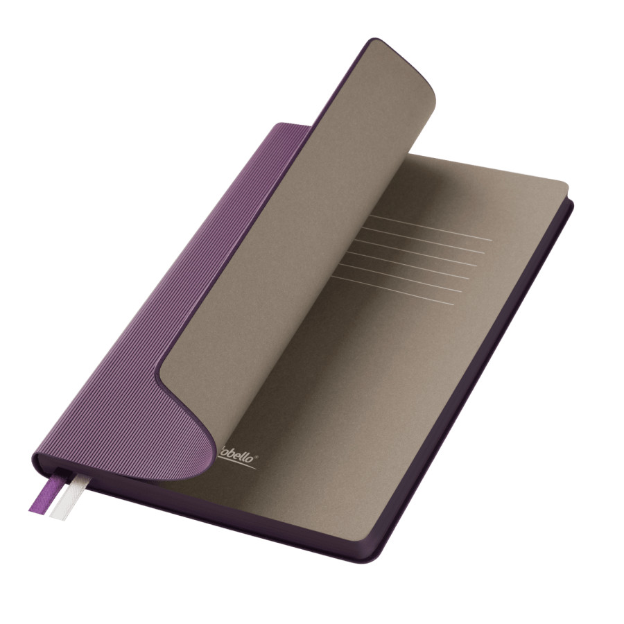 Недатированный ежедневник отличается современным технологичным дизайном и оригинальным цветовым ансамблем. Гибкая матовая обложка со скругленными уголками выполнена из искусственной кожи, имитирующей покрытие в стиле Hi-Tech. Переплетный материал с вертикальным рифлением, бархатистый, со слегка прорезиненным эффектом. За счет интересной рельефной фактуры прослеживается игра цвета при перемене освещения. Цвет – фиолетовый, насыщенный, плотный, однородный. Создает органичный природный тандем с матовыми форзацем и нахзацем серого цвета. Срез матовый, в тон обложки. Страницы со скругленными уголками приятного глазу теплого светло-кремового цвета. Выполнены из гладкого шелковистого офсета. Ежедневник дополнен двойным атласным ляссе из лент серого и фиолетового цветов, имеющих глянцевый отлив.