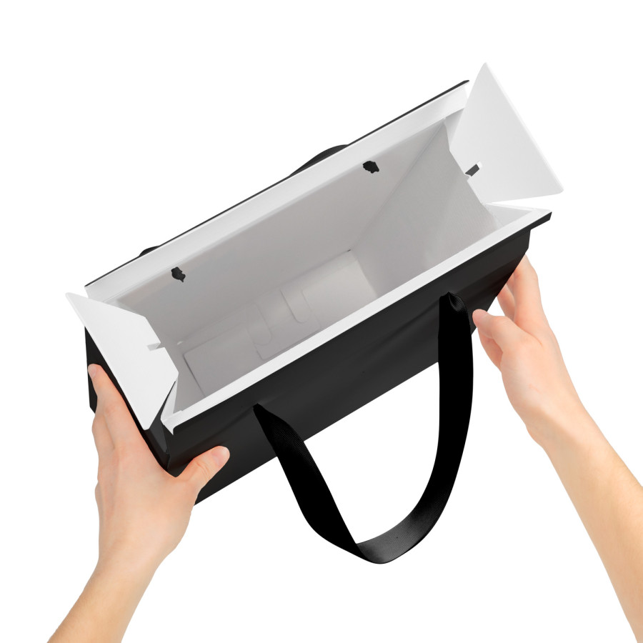 Универсальная подарочная коробка-пакет в большом размере — это идеальное решение для тех, кто ценит как эстетичный внешний вид, так и функциональность. Созданные из микрогофрокартона и кашированного мелованной бумагой, эти коробки отличаются изысканным дизайном и прочностью, что делает их идеальным выбором для упаковки подарков.