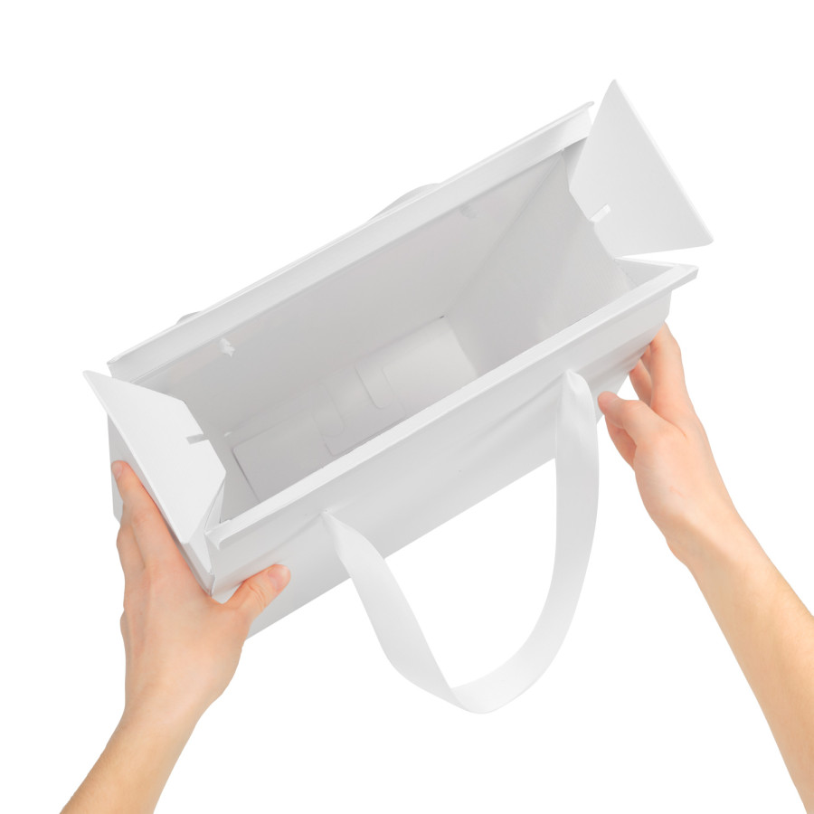 Универсальная подарочная коробка-пакет в большом размере — это идеальное решение для тех, кто ценит как эстетичный внешний вид, так и функциональность. Созданные из микрогофрокартона и кашированного мелованной бумагой, эти коробки отличаются изысканным дизайном и прочностью, что делает их идеальным выбором для упаковки подарков.