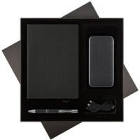 Подарочный набор Твид (Tweed), черный (ежедневник, ручка, аккумулятор)