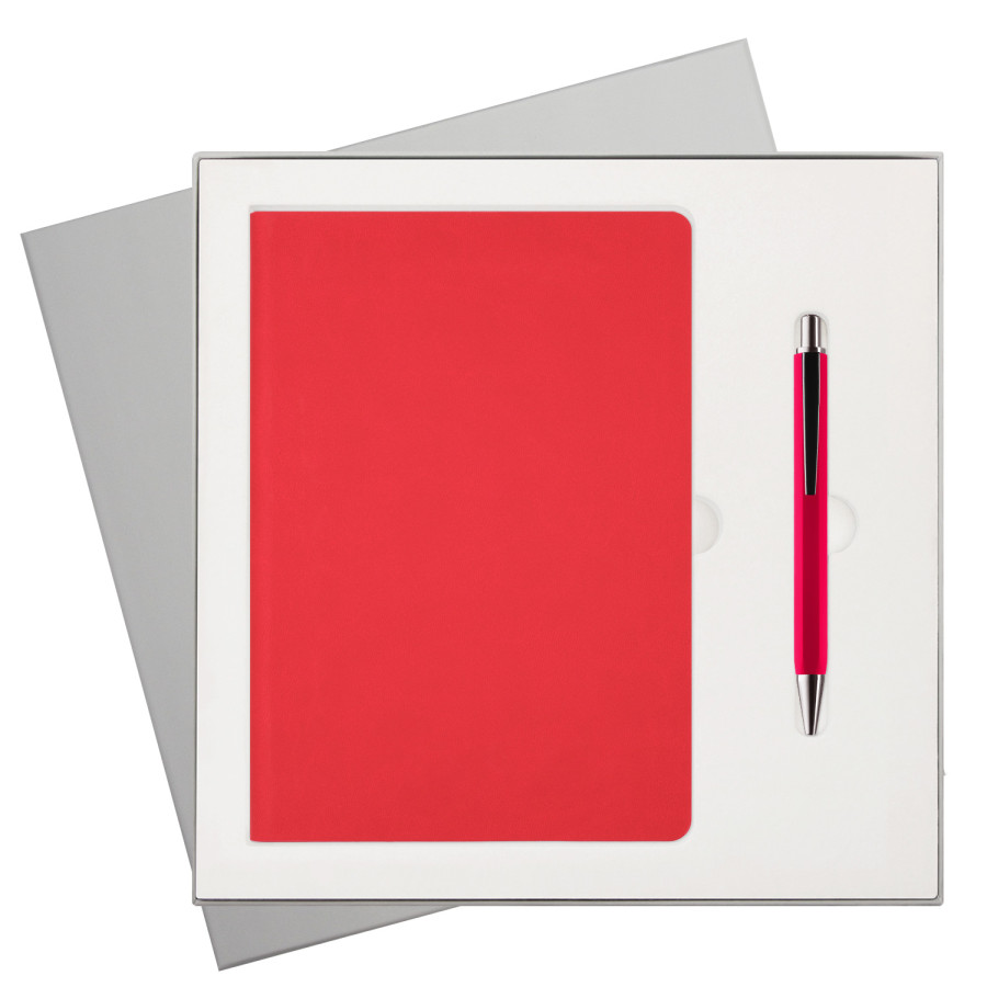 Подарочный набор Латте софт-тач (Latte soft touch), красный (ежедневник, ручка)