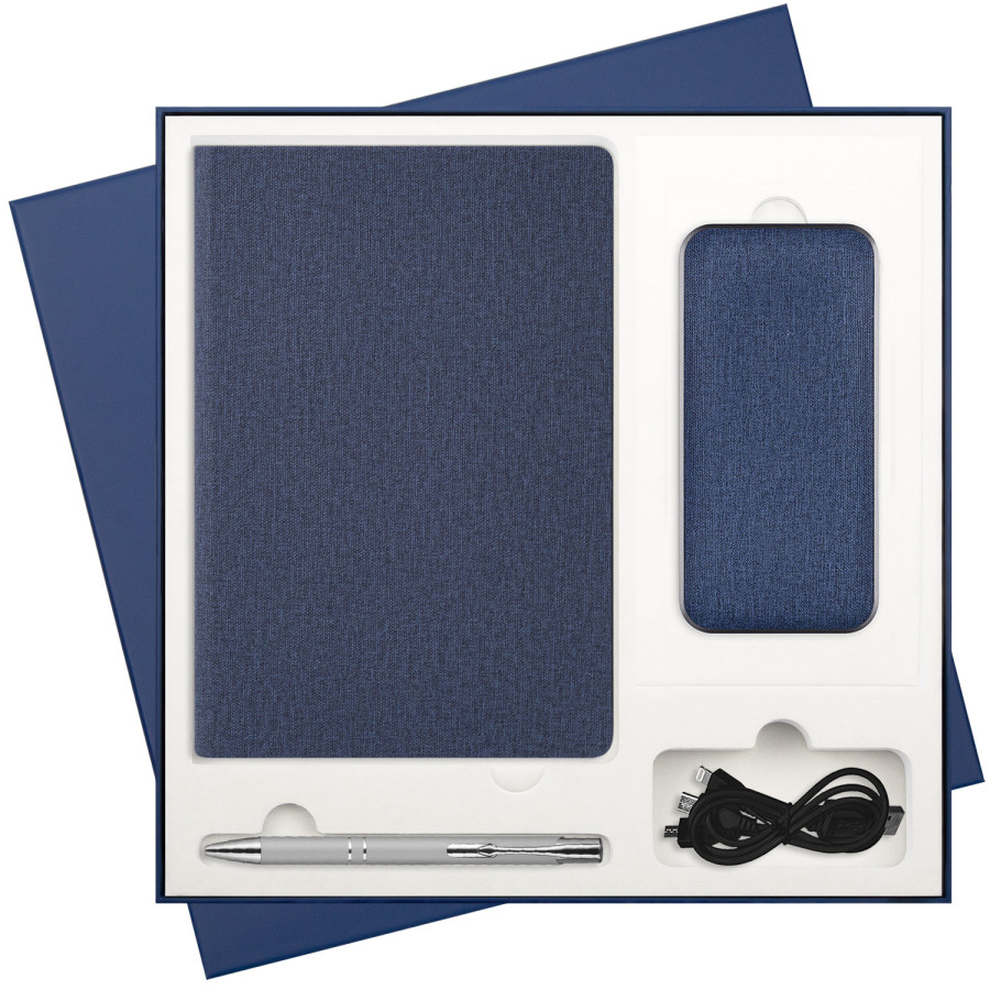 Подарочный набор Твид (Tweed), синий (ежедневник, ручка, аккумулятор)