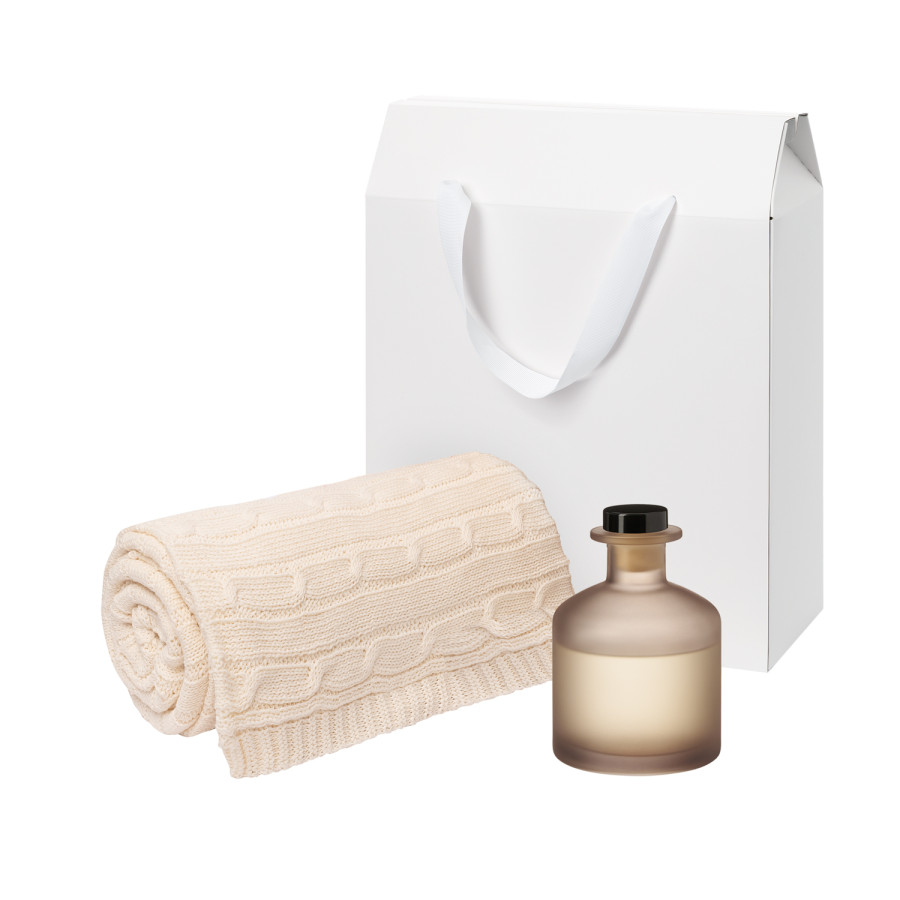 Подарочный набор Мизу (Mizu), Фадо (Fado), бежевый (диффузор, плед)
