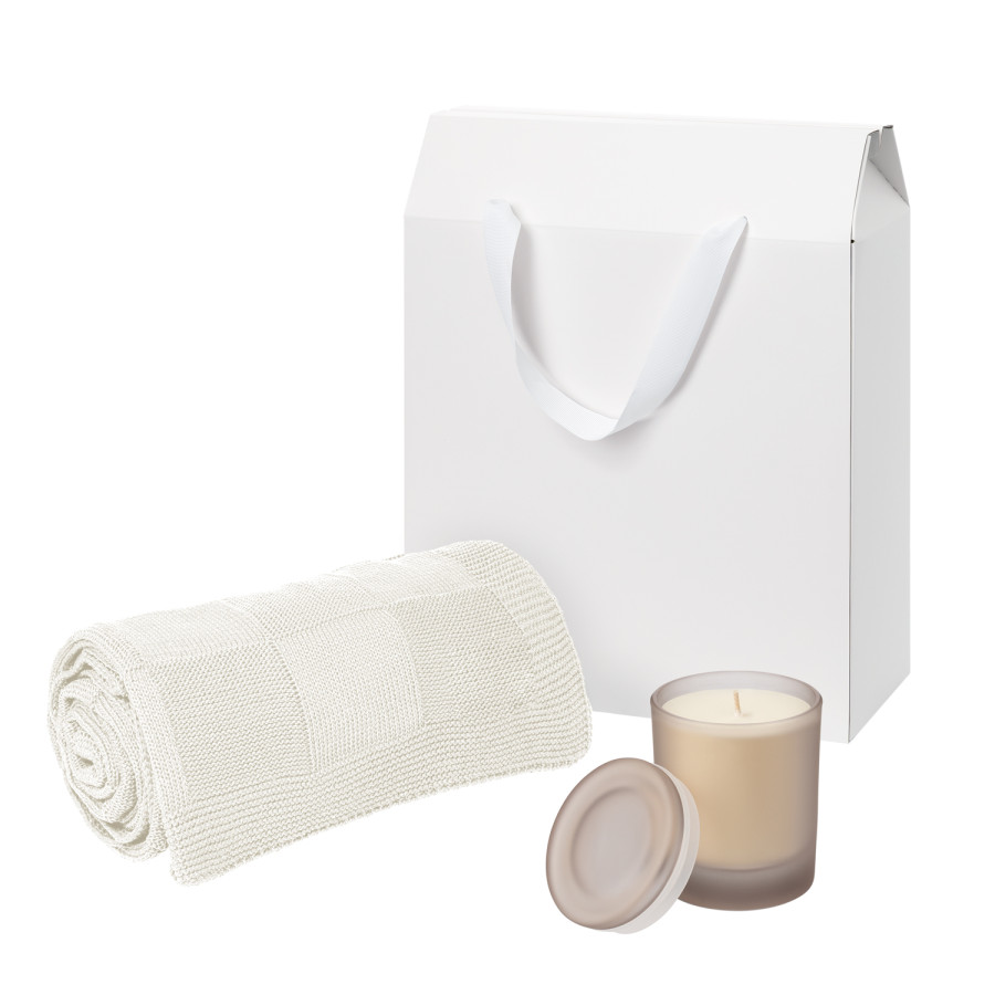 Подарочный набор Мизу (Mizu), Селла (Cella), бежевый (свеча, плед)