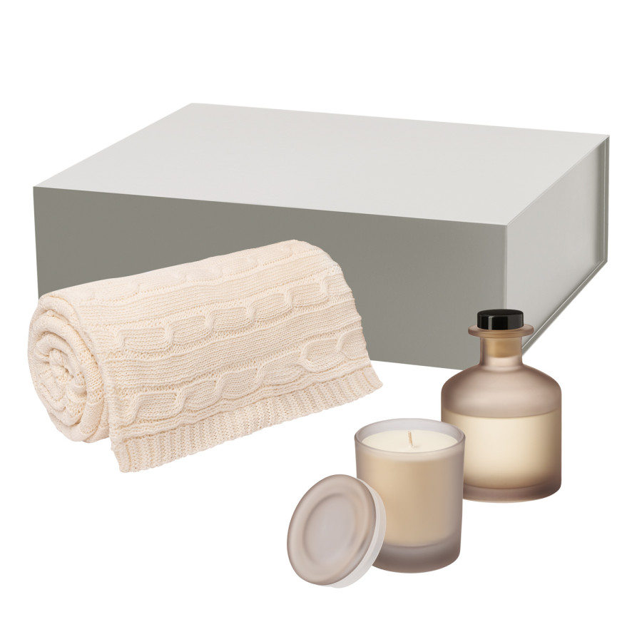 Подарочный набор Мизу (Mizu), Фадо (Fado), бежевый (свеча, диффузор, плед)