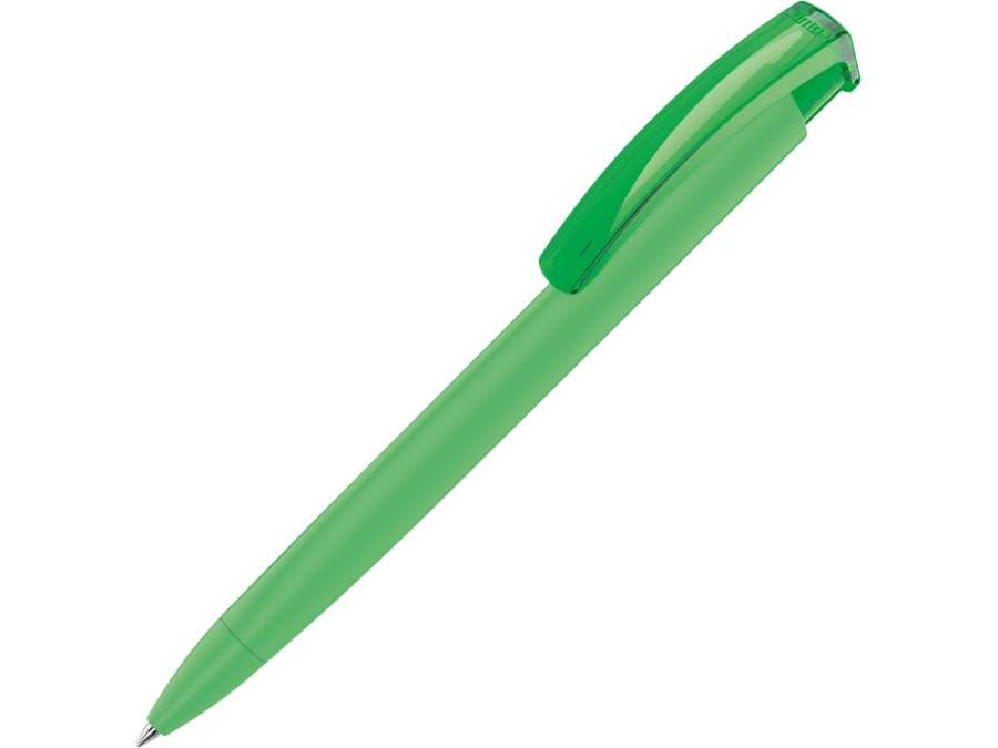 Ручка шариковая трехгранная UMA TRINITY K transparent GUM, soft-touch, зеленое яблоко