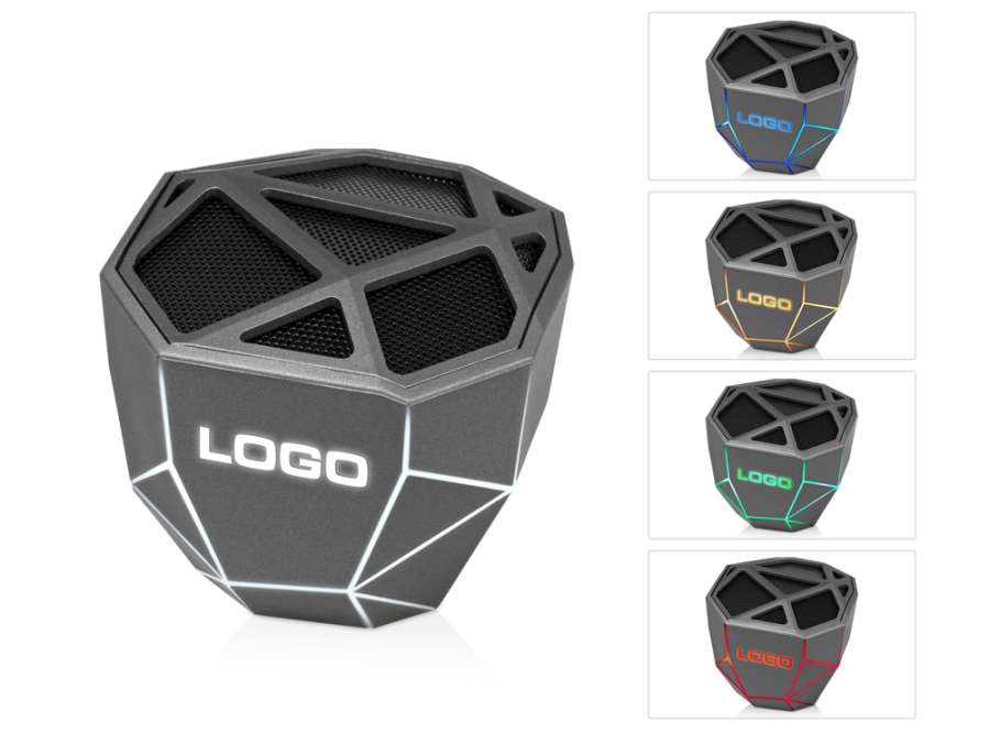 Беспроводная портативная колонка Geo с функцией расширенных басов изготовлена в дизайнерском стиле low-poly. Форма революционного Bluetooth-динамика напоминает мистический кристалл, а подсветка различных цветов (белая, синяя, красная, зеленая, оранжевая) добавляет таинственности. При этом ее яркость зависит от воспроизводимой музыки. Подсветку можно легко поменять, сделав три быстрых нажатия на кнопку включения и произойдет настоящая магия у вас в руках.