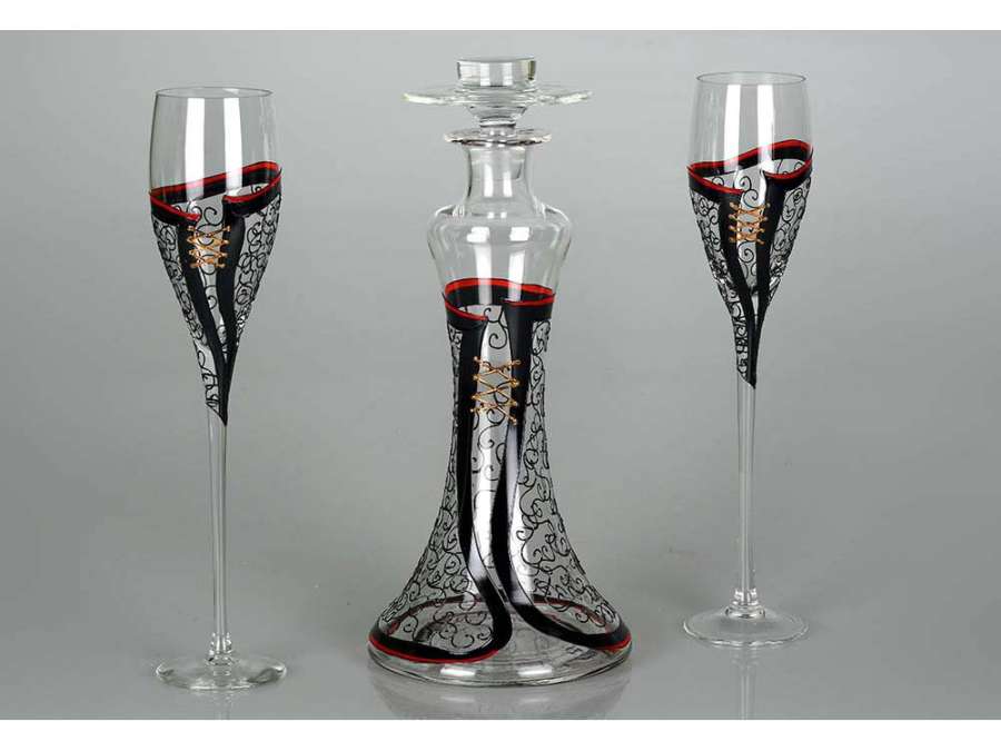 Стильный набор состоит из графина, стилизованного под женский силуэт, и пары бокалов. Набор по достоинству оценят руководители компаний, работающих в индустрии моды, красоты и визажа. Набор можно компактно упаковать в подарочный футляр. Комплектность: графин 1000мл, бокал 300мл- 2шт