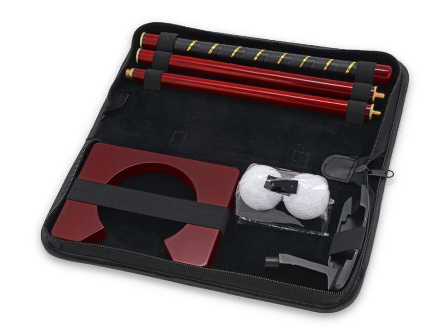 Офисный набор для гольфа в футляре – оригинальный презент, который обязательно пригодится в минуты затишья и релакса во время рабочего дня. В комплект входит все, что нужно для игры в гольф, и это прекрасно размещается в компактном футляре. Комплектность: 2 мяча, складная клюшка, лунка в черном футляре
