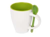 Стильная кружка на 320 мл с ложкой выполнены в контрастном сочетании цветов. Оригинальная форма ручки кружки позволяет крепить в ней ложку. Замечательный подарок для коллег по работе. Комплектность: кружка d8, 5 х 10 см, ложка 12 см