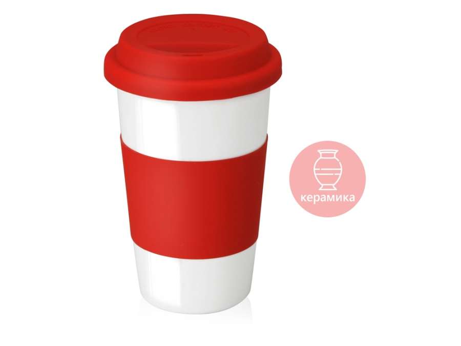 Кружка с силиконовой крышкой и манжетой Нью-Йорк 300мл, красный