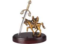 Стильный подарок для благородного человека. Этот сувенир напоминает цикл артуровских легенд: меч в камне, доблестные рыцари, защищающие слабых и угнетенных. Возможна индивидуализация сувенира путем нанесения гравировки. Комплектность: подставка с фигурой, нож канцелярский 16, 3 см