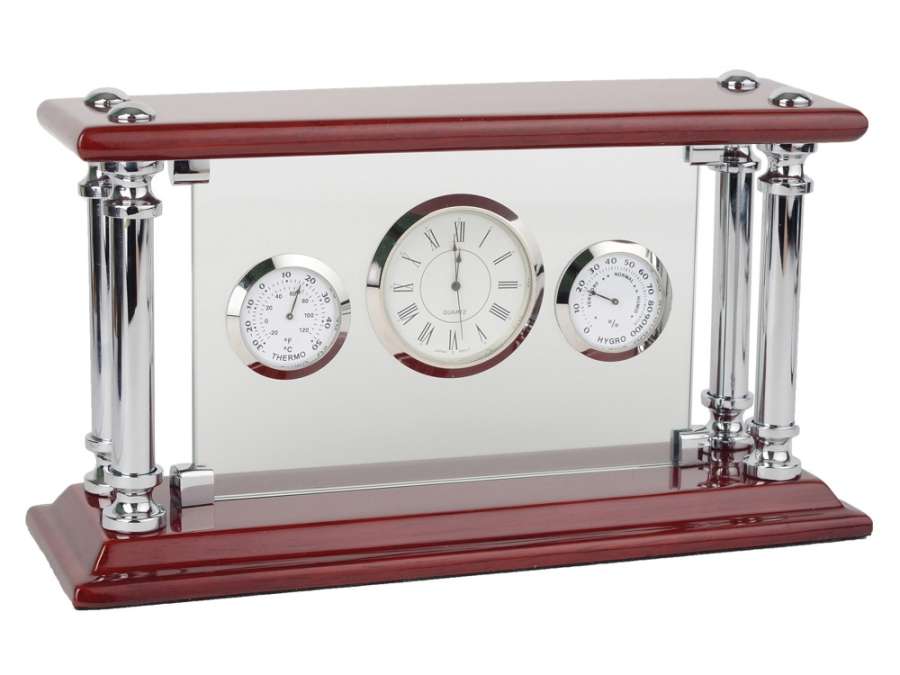 Отличный статусный подарок для руководителя или партнера компании – погодная станция, совмещающая в себе часы, гигрометр и термометр. Благородное сочетание дерева, металла и стекла не оставит равнодушным даже очень избирательного человека.