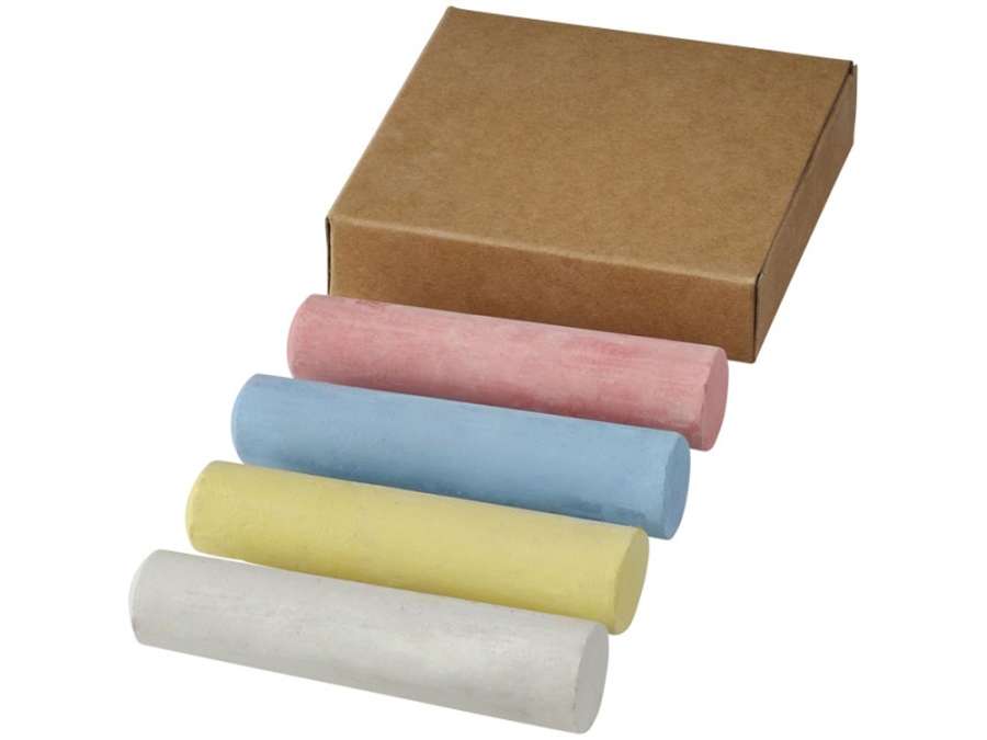 Набор мелков в натуральной коробке 4 единицы. 4 цветных мелка в бумажной коробке. Нанесение на элементах на предлагается. Бумага. Комплектность: мелок цветной- 4шт
