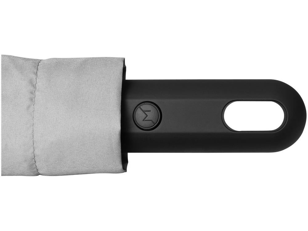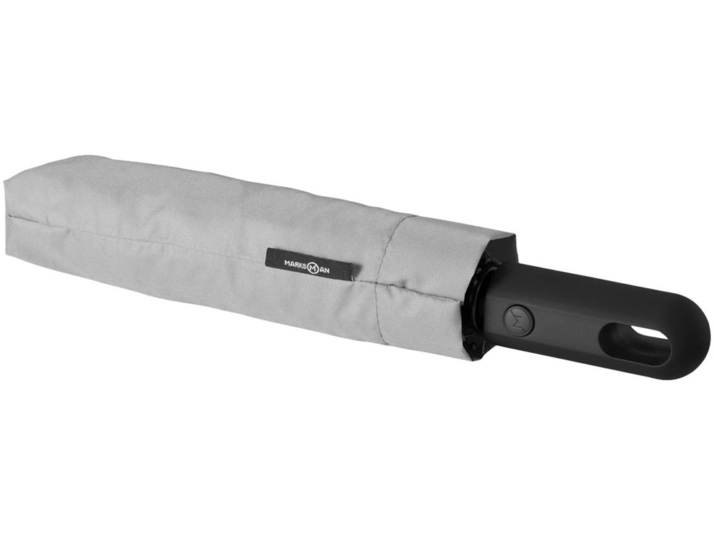 Эксклюзивный автоматически открывающийся и закрывающийся зонт в три сложения. Черная металлическая трость, стекловолоконные спицы и пластиковая прорезиненная ручка. Предлагается в чехле под цвет зонта. Длина зонта в сложенном виде: 31 см. Эпонж полиэстер.