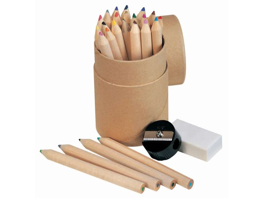 Набор состоит из 24 разноцветных карандашей, ластика и точилки в картонном футляре. Отличный символический подарок для дизайнеров и художников. На футляр и карандаши можно нанести логотип. Комплектность: 24 цветных карандаша, резинка и точилка в картонной цилиндрической коробке