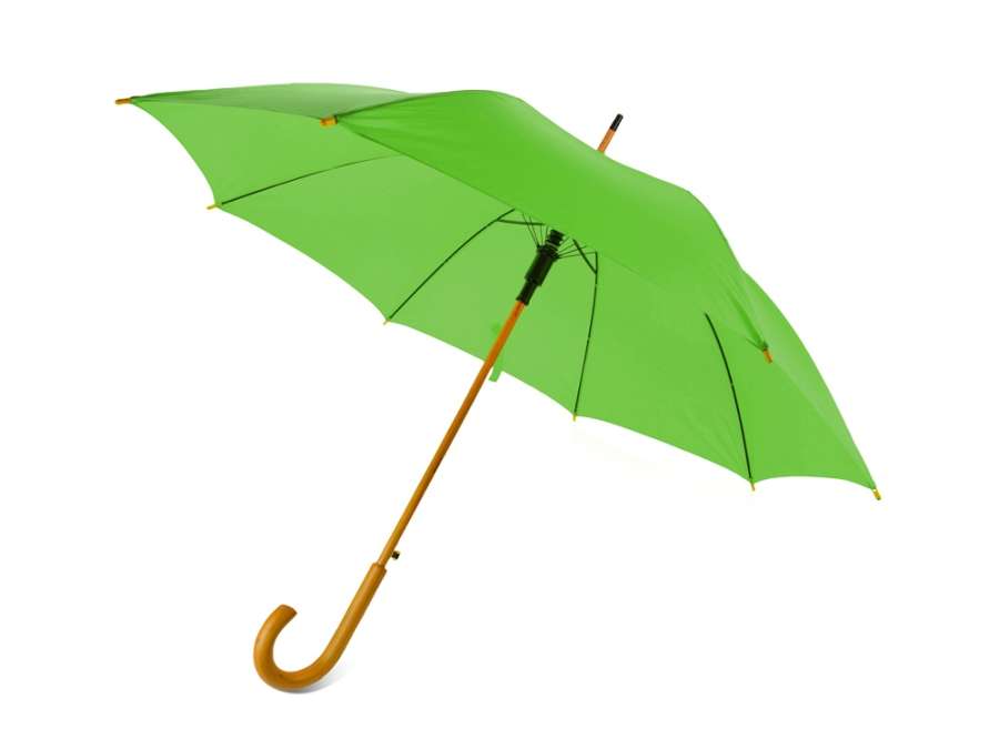 Полуавтоматический зонт-трость с деревянной ручкой выполнен из качественных материалов и устойчив к сильным порывам ветра. Яркие, сочные цвета в ассортименте.