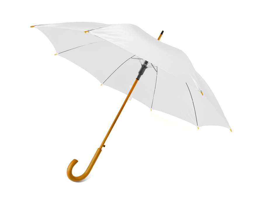 Полуавтоматический зонт-трость с деревянной ручкой выполнен из качественных материалов и устойчив к сильным порывам ветра. Яркие, сочные цвета в ассортименте.