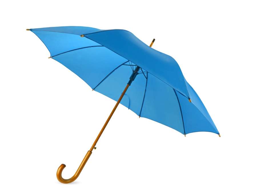 Полуавтоматический зонт-трость с деревянной ручкой выполнен из качественных материалов и устойчив к сильным порывам ветра. Яркие, сочные цвета в ассортименте.